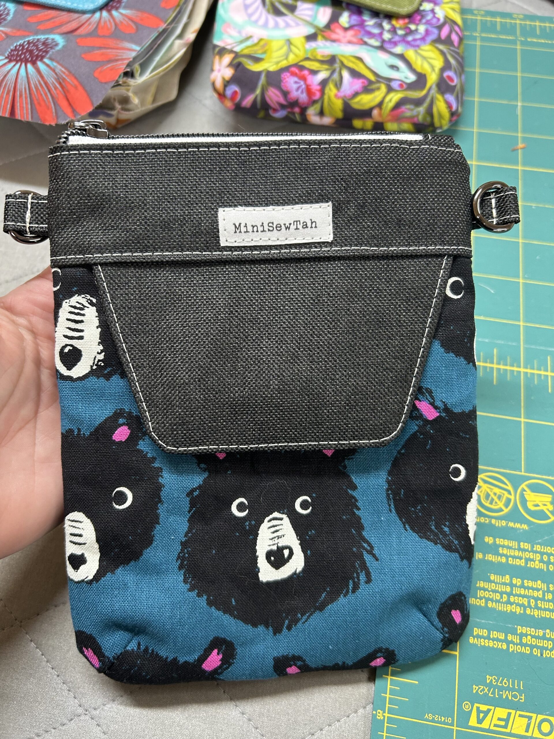 MiniSewTah makes use of both industrial and domestic sewing machines to achieve high quality and professional results. Debra uses the domestic machine to assemble most cotton and canvas creations, while the industrial will power through thicker material and provides smooth topstitching for a professional finish.