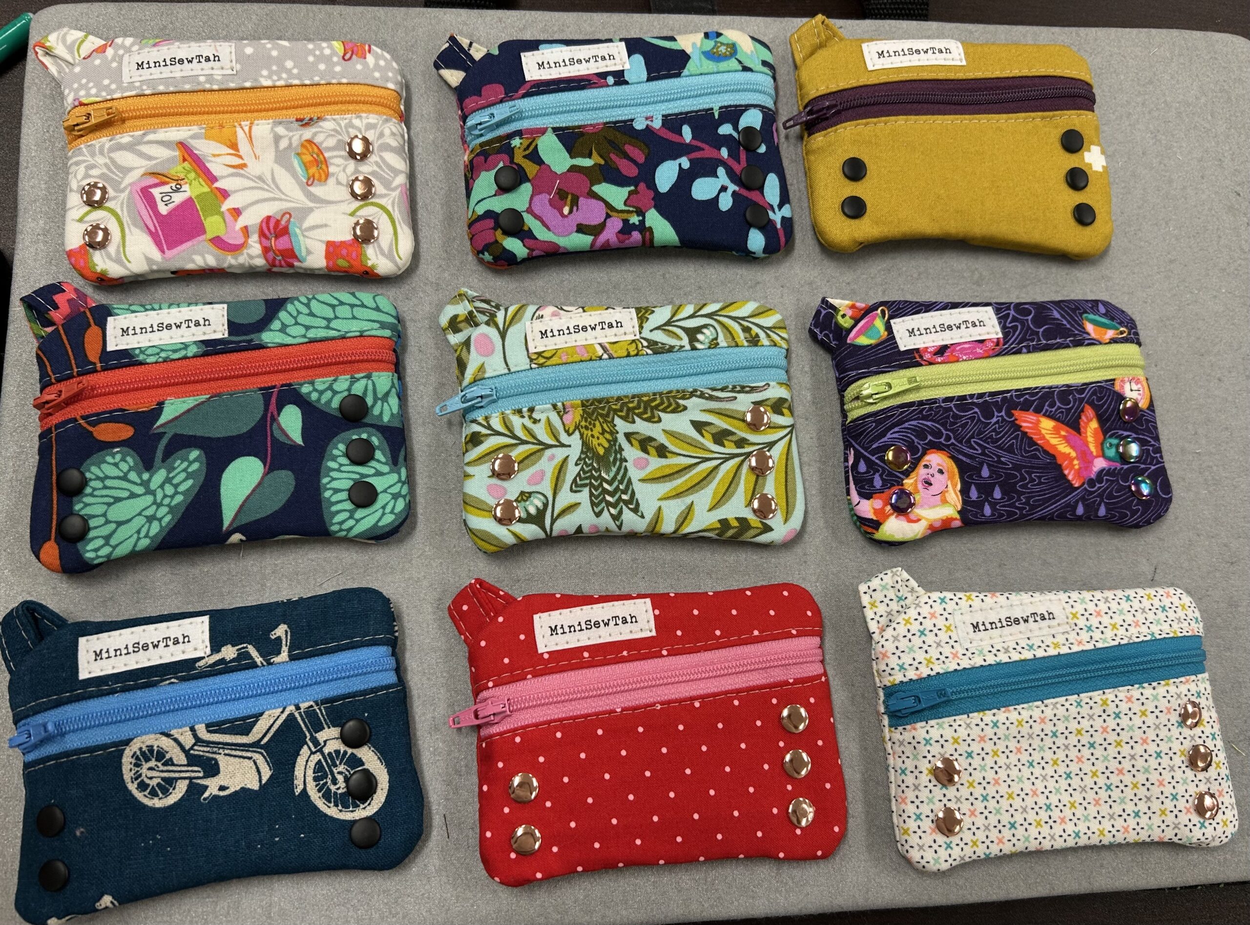 MiniSewTah’s versatile product line includes unique solutions that fit daily life. Wallets range from the simple and classic cotton zip coin pouch with or without card holders to a more sophisticated vinyl or faux leather design featuring double slip and zip pockets, 8 secure card slots and many color options! Purses vary from efficient cross body bags to hold your phone and wallet while you’re on the go to elegant evening bags/wristlets for special occasions!