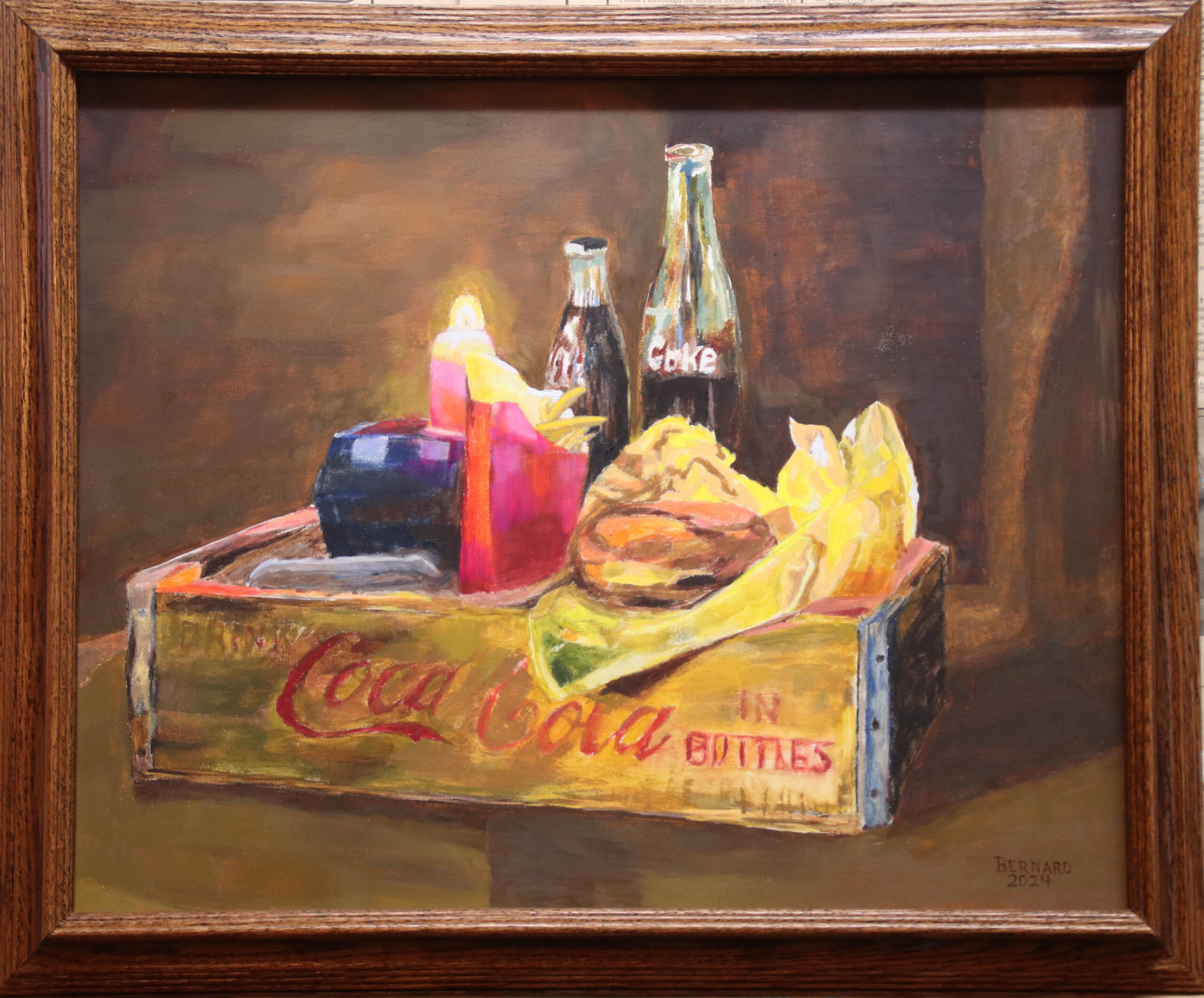 This helped when he taught art instruction during the covid pandemic. Steve does not paint things but light. In one of his latest projects is an oil painting that includes the effect of one candle light on a scene of an intimate dinner for two and how the light reflects in the painting. To Steve the effect of the light is the focal point.