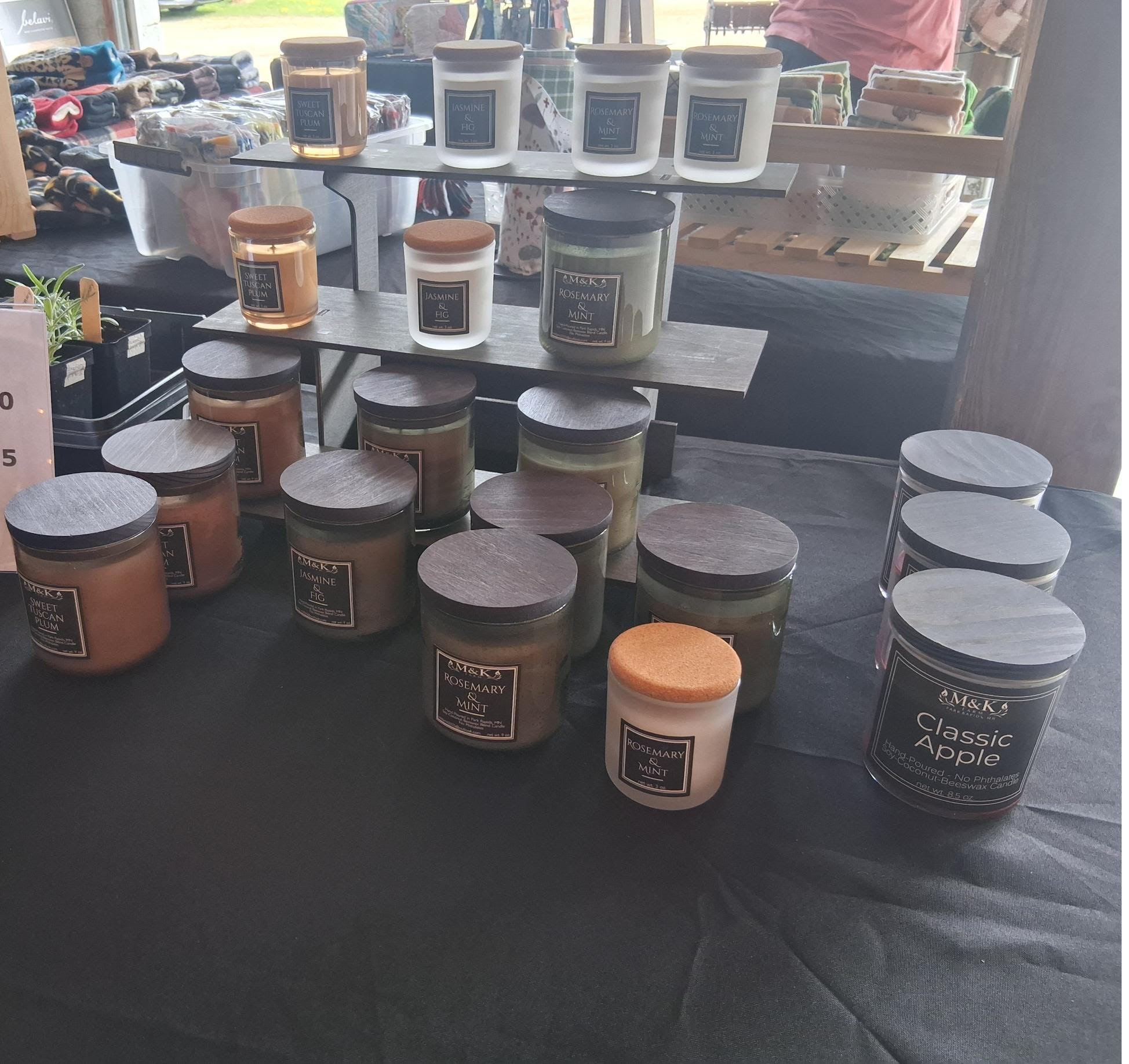 Choose from a variety of room-filling scents, ranging from clean and fresh, to sweet and floral, to warm and cozy. All candles are hand-poured into an assortment of beautiful, elegant glass jars complete with natural cork or pine lids. Come and visit Kim’s booth in Pine River and smell some candles!
