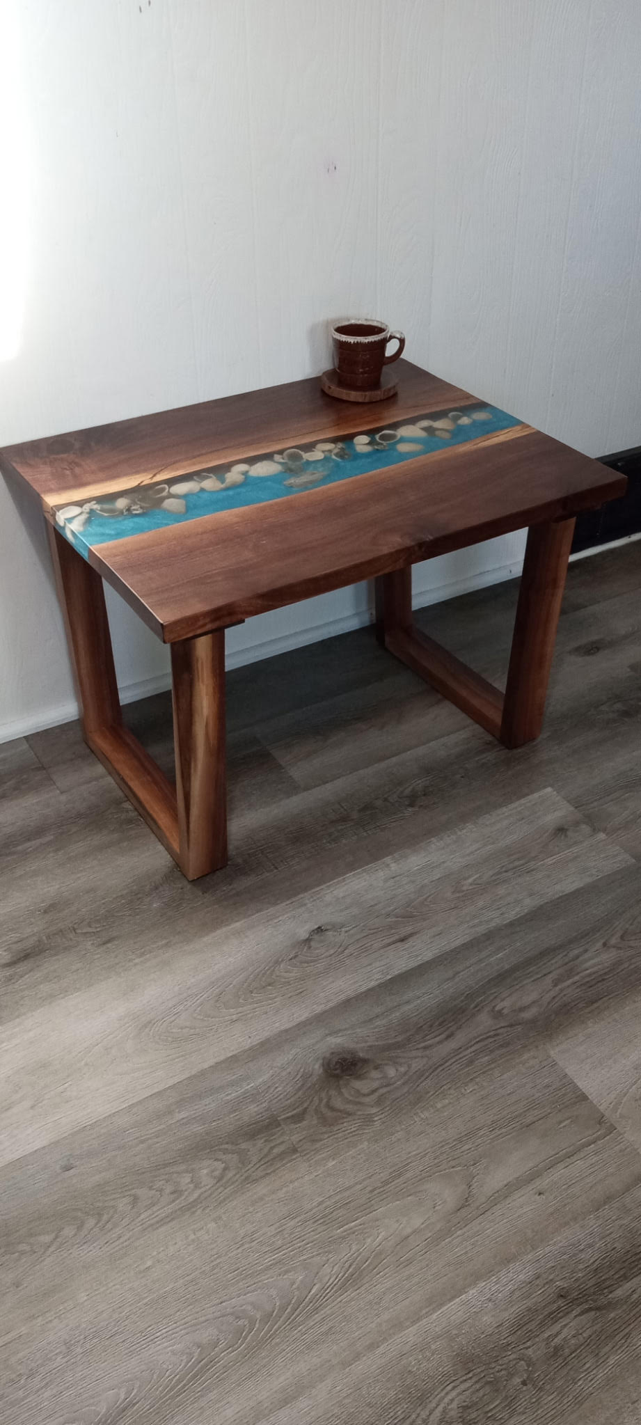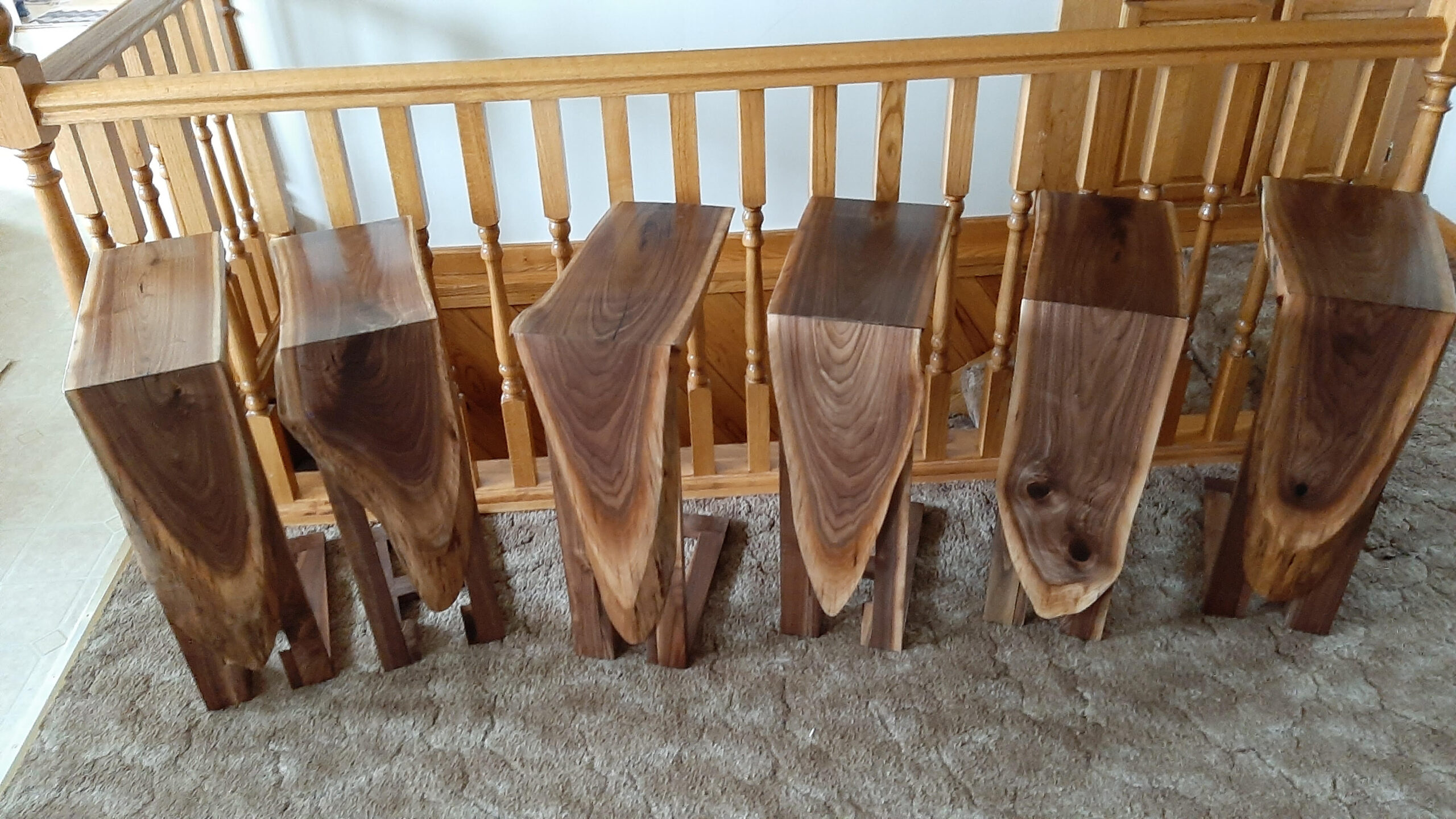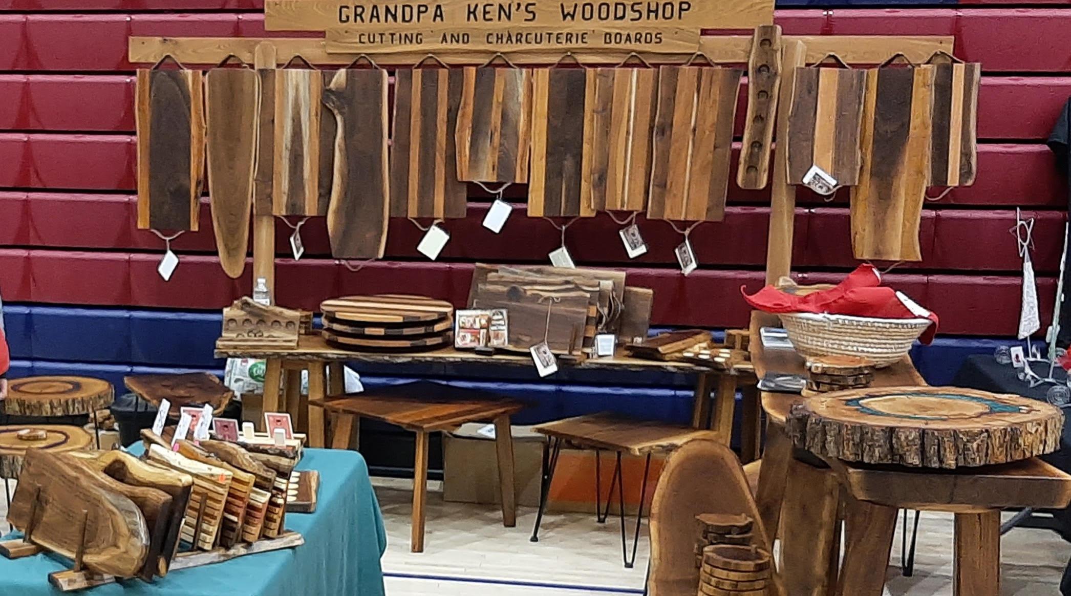 Following a work accident in 2019, he decided to go more full-time into his woodworking dream. Ken starts with standing or newly fallen trees (mostly black walnut) which he cuts and mills and then goes to work plaining, assembling, sanding, and finishing, making many different kinds of live edge products. These include large and small tables, river tables with epoxy, lazy susans, charcuterie boards, urn boxes, cribbage boards, domino and card holders, and coaster sets just to name a few.